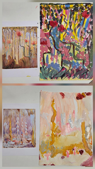 Kitą dieną klasėje skambant M.K. Čiurlionio muzikai, mokiniai stebėjo jo paveikslus "Pasaulio sutvėrimas" ir mėgino sukurti savo darbą, kuo panašesnį į pasirinktą M.K. Čiurlionio paveikslą, naudodami guašą. Vaikai tyrinėjo spalvas, formas, kūrė nuotaiką, bandė perteikti menininko stilių ir savo vaizduotės pojūčius.