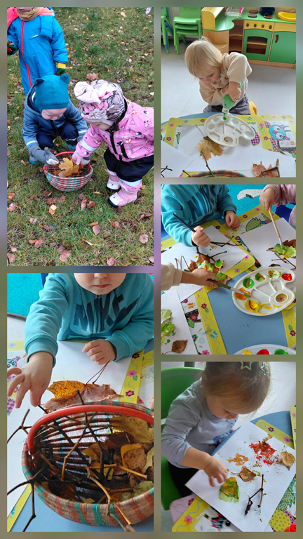 IU LS 1 grupės vaikai klausėsi M.K. Čiurlionio muzikos, kuri sukūrė ramią ir kūrybišką nuotaiką. Lauke prisirinko įvairių rudens lapų ir šakelių, stebėjo jų formas ir spalvas. Grįžę į grupę piešė ant lapų, maišė dažus, stebėjo kaip spalvos susilieja. Vėliau dažytus lapus dėjo ant popieriaus ir darė antspaudus. Iš surinktų lapų ir šakelių klijavo kompoziciją "Miškas".