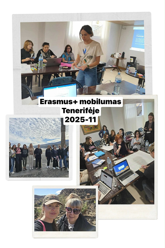 Šią savaitę mūsų mokyklos pradinio ugdymo mokytoja Asta Klimienė ir ikimokyklinio ugdymo mokytoja Jolanta Parulienė dalyvauja ERASMUS+ akreditacijos mobilumų veikloje. Kolegės gilina savi teorines žinias ir praktinius gebėjimus - mokymuose "Atraskite žaidimu grįsto mokymosi ir žaidybinimo galią švietime " (angl. Discover the power of Game Based Learning and Gamification in education) Tenerifėje 2025-11-16/2025-11-22. Mokymai padės suprasti žaidimų ir žaidybinimo poveikį mokinių motyvacijai ir įsitraukimui, susipažins su įvairiais skaitmeniniais įrankiais bei žaidimo elementais, kuriuos galima integruoti į pamokas. Be to mokysis kurti žaidybines užduotis, scenarijus ir išbandys juos realiose situacijose.